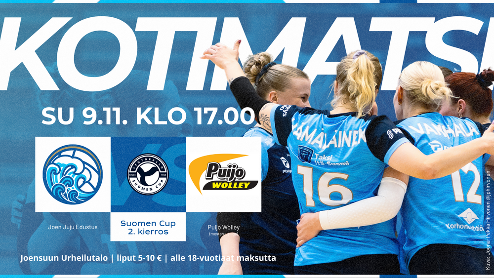 Juju Edustus kohtaa Mestaruusliigassa pelaavan ja hallitsevan Suomen Mestarin Puijo Wolleyn Suomen Cupin toisella kierroksella isänpäivänä 9.11. klo 17.00.