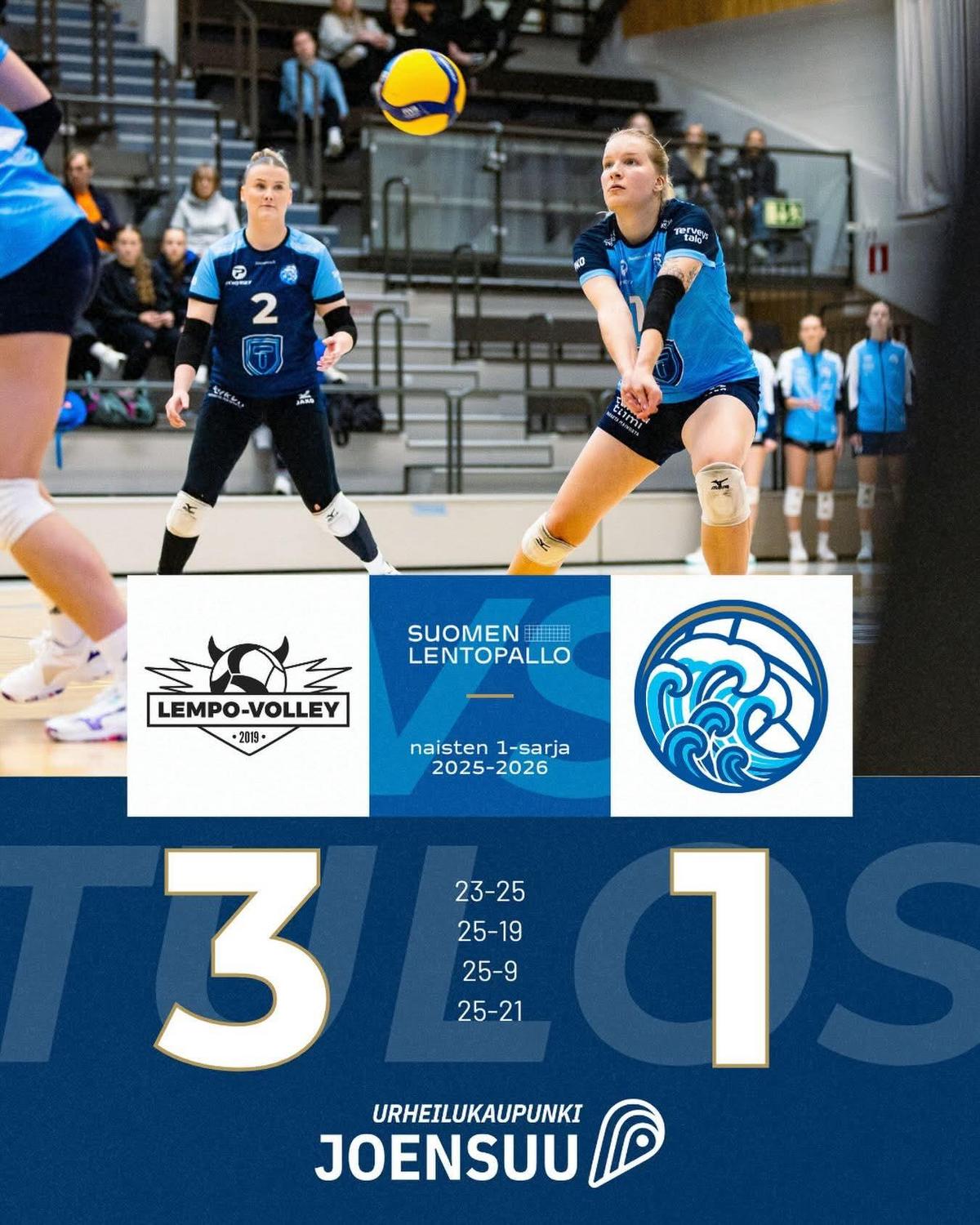 Harmillinen 3-1 tappio Lempo-Volleylle. (23-25, 25-19, 25-9, 25-21) Avauserä päättyi niukasti Jujulle, mutta Lempo-Volley paransi oteittaan seuraavissa erissä ja vaikeutti vastaanottoamme hyvällä syöttöpelillä. Juju kiri neljännessä erässä vielä mukaan taisteluun, mutta erän lopussa kotijoukkue piti pintansa ja pisteet jäivät Lempäälään.