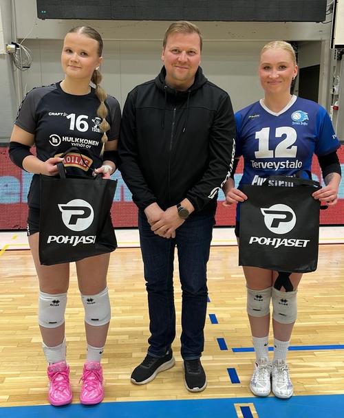 Otteluisäntä Pohjoset palkitsi parhaina pelaajina Jujusta yleispelaajan numero 12 Nea Mattilan ja Tsempistä numero 16 hakkurin Sanni Maarasen.