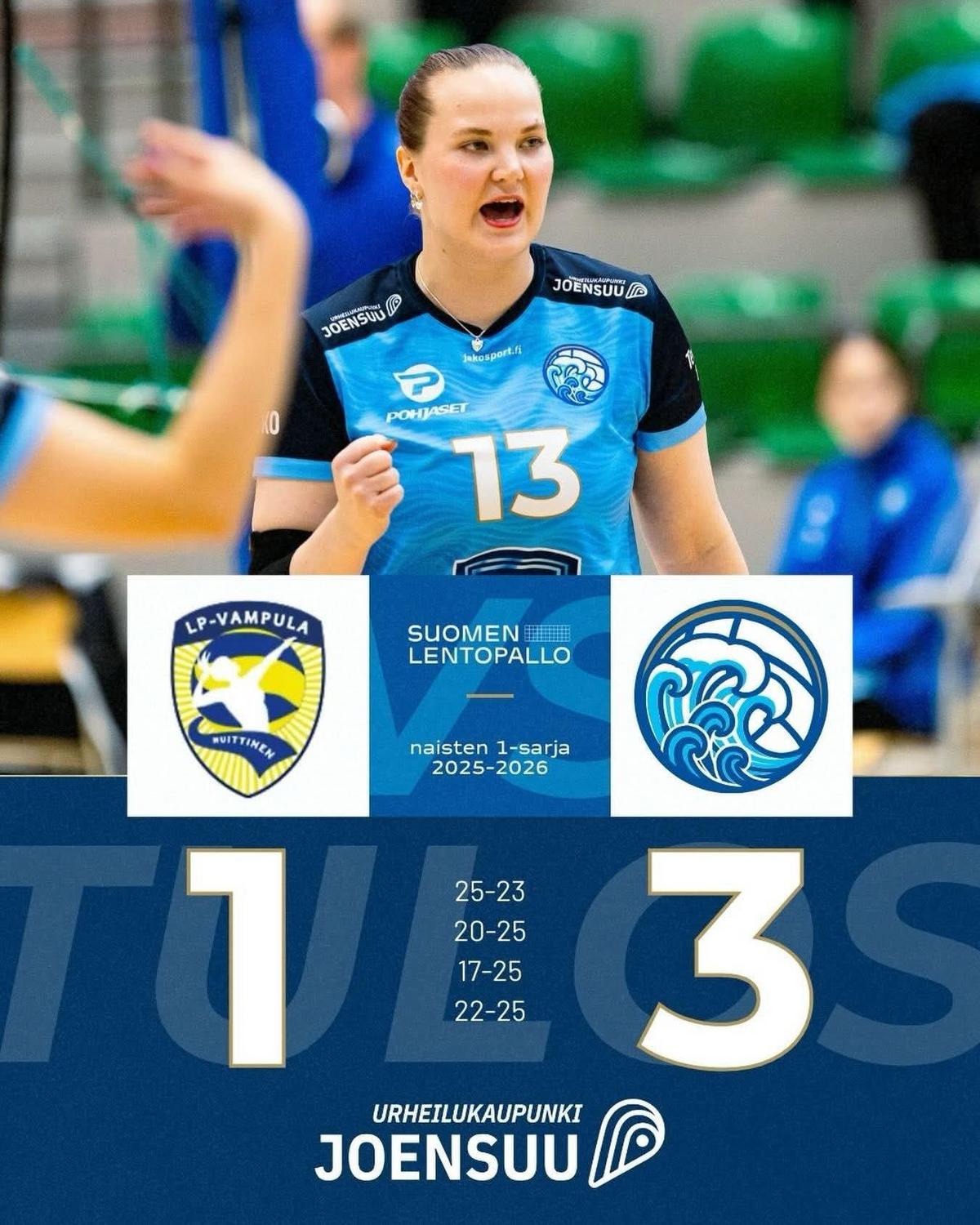 Viikonlopun vierasreissu alkoi voitokkaasti 1-3 voitolla! (25-23, 20-25, 17-25, 22-25) Joen Juju haki täydet kolme sarjapistettä LP Vampula Akatemiaa vastaan, vaikka ottelun ensimmäisessä erässä oma peli haki vielä uomiaan. Avauserän käynnistysvaikeuksien jälkeen Juju onnistui parantamaan omaa tekemistään erityisesti syöttöpelissä ja horjutettua Vampulan vastaanottoa ja hyökkäyspeliä. Tästä hyvällä fiiliksellä huomiseen!